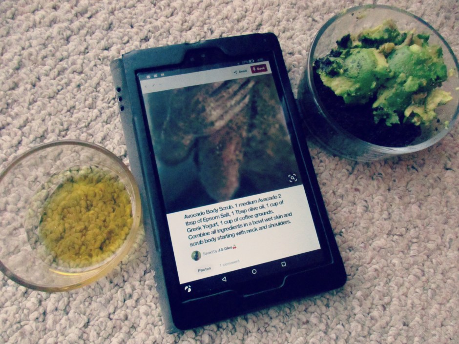 Smash Avocado into all ingredients with a fork and stir. Make sure you use this right away! Scrub in circular motions starting from your face then down your neck and shoulders. Continue on with the rest of your body. Rinse well. To protect your drains put a hair catcher over the drain and it will catch any chunks. Enjoy your soft fresh skin!